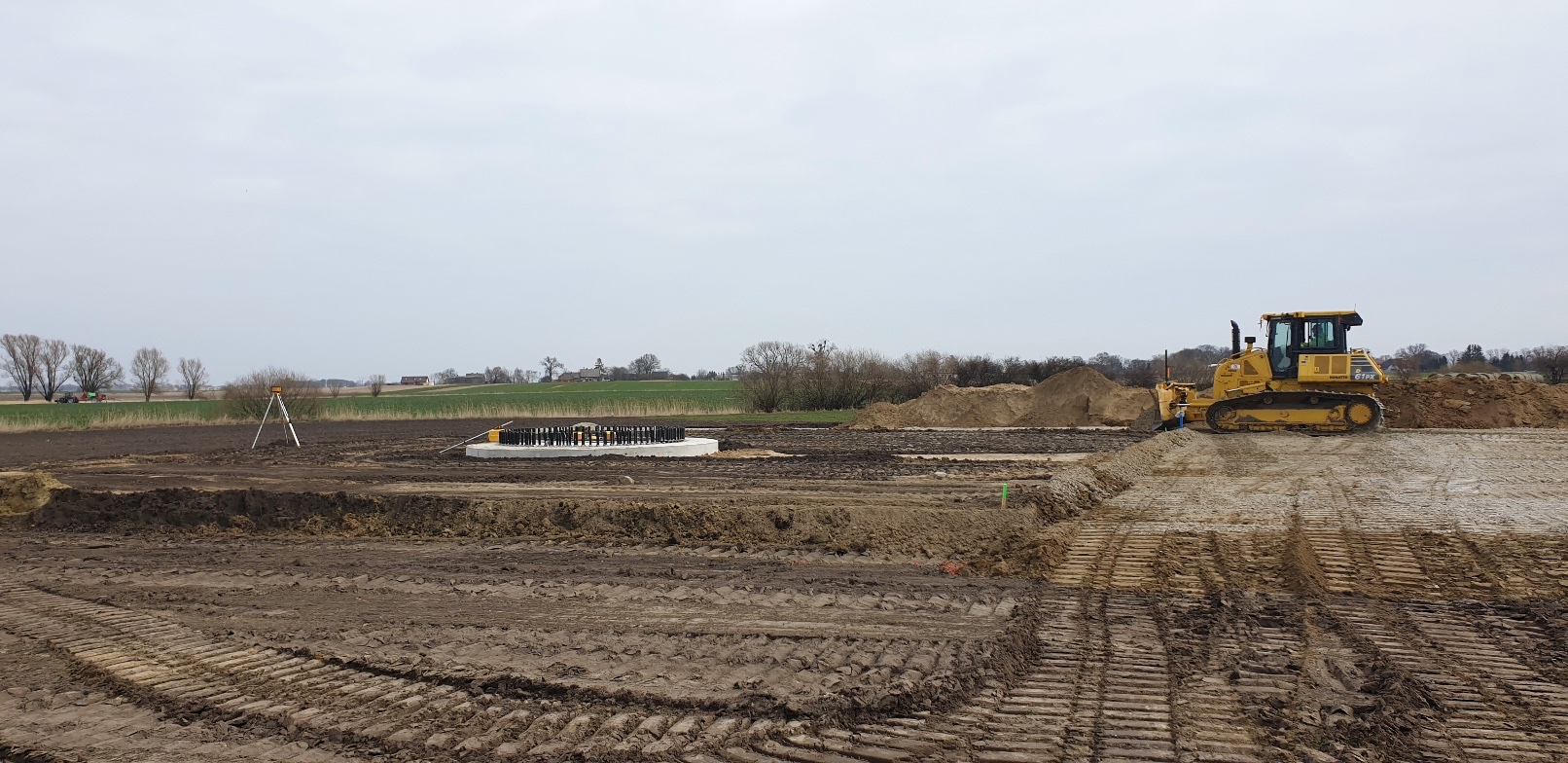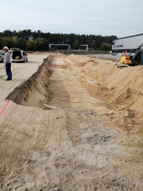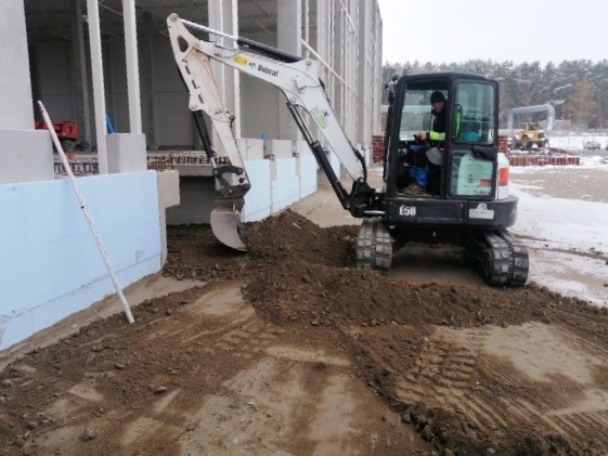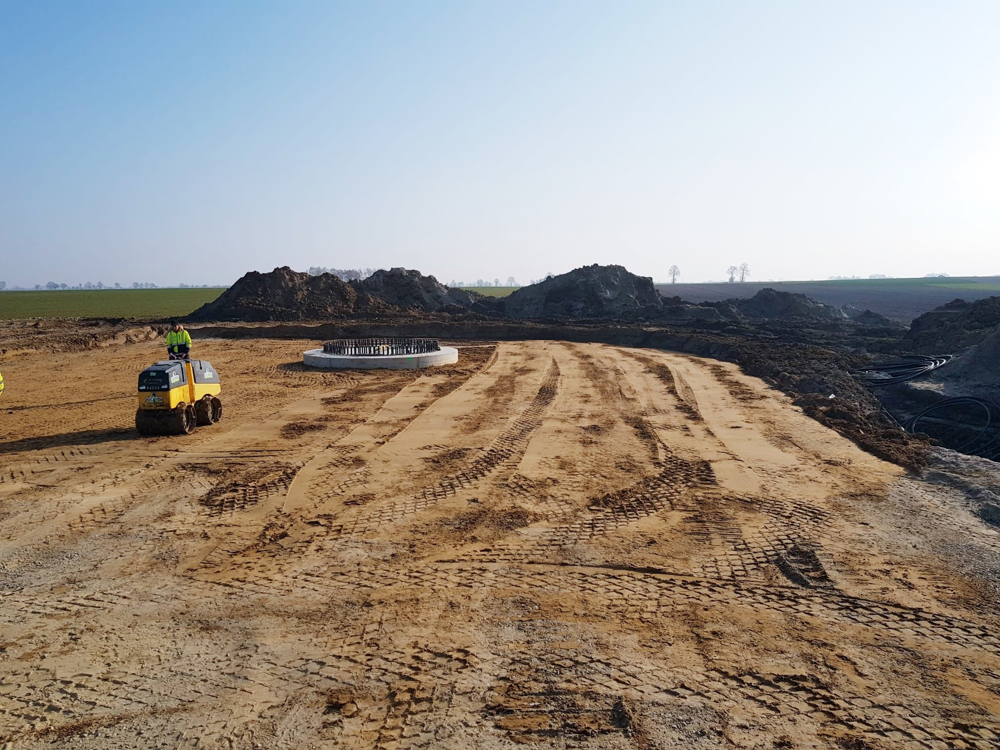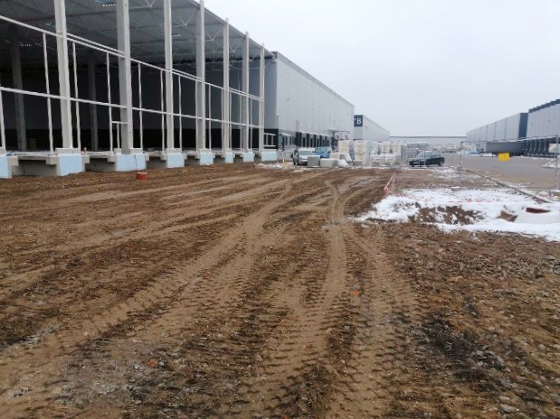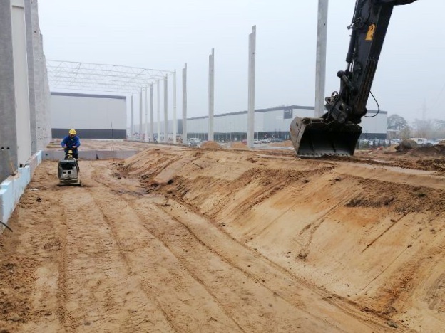 Budowa hali magazynowej przy ulicy Mokrej w Bydgoszczy. Dokonano wymiany gruntu na powierzchni 23.000 m3. Powierzchia zabudowy 12.000m2. Czas realizacji sierpień- październik 2022.