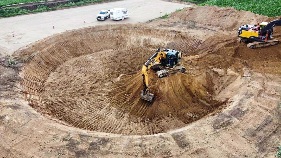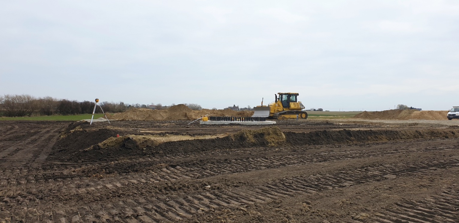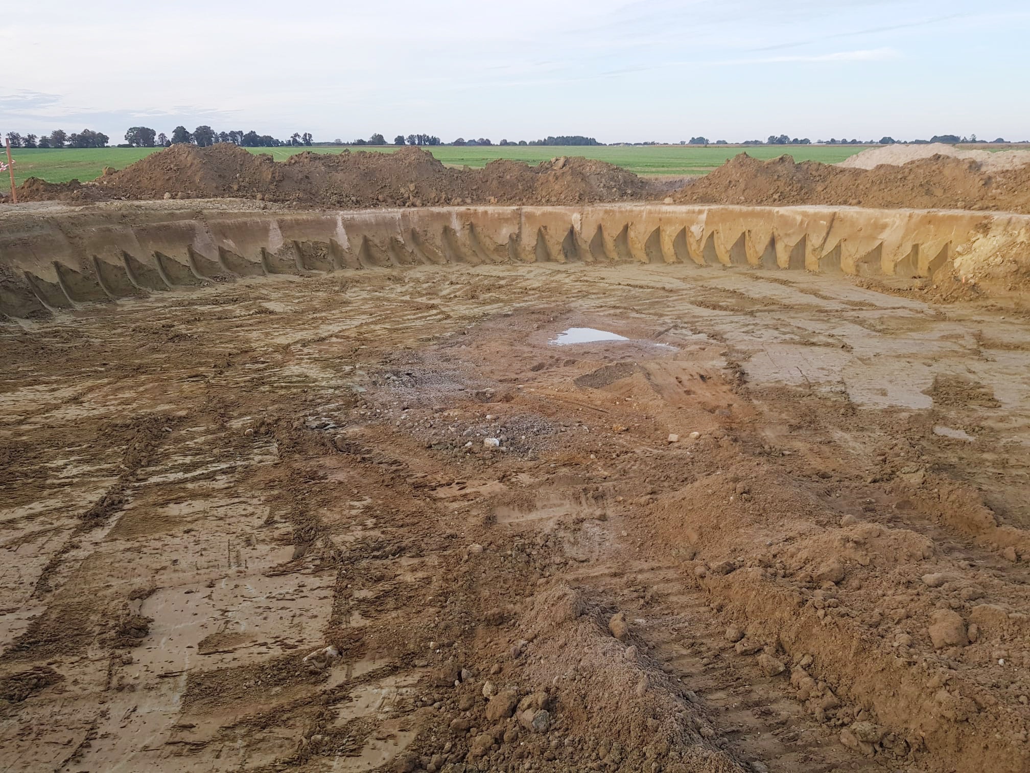 Budowa hali magazynowej przy ulicy Mokrej w Bydgoszczy. Dokonano wymiany gruntu na powierzchni 23.000 m3. Powierzchia zabudowy 12.000m2. Czas realizacji sierpień- październik 2022.